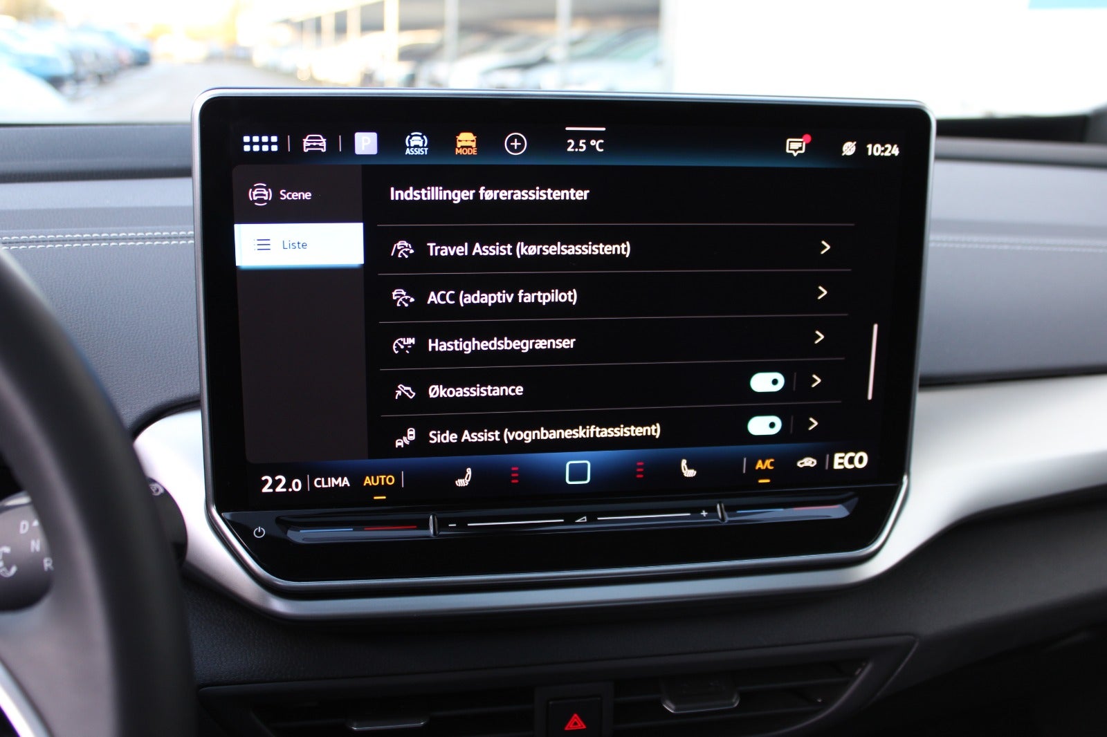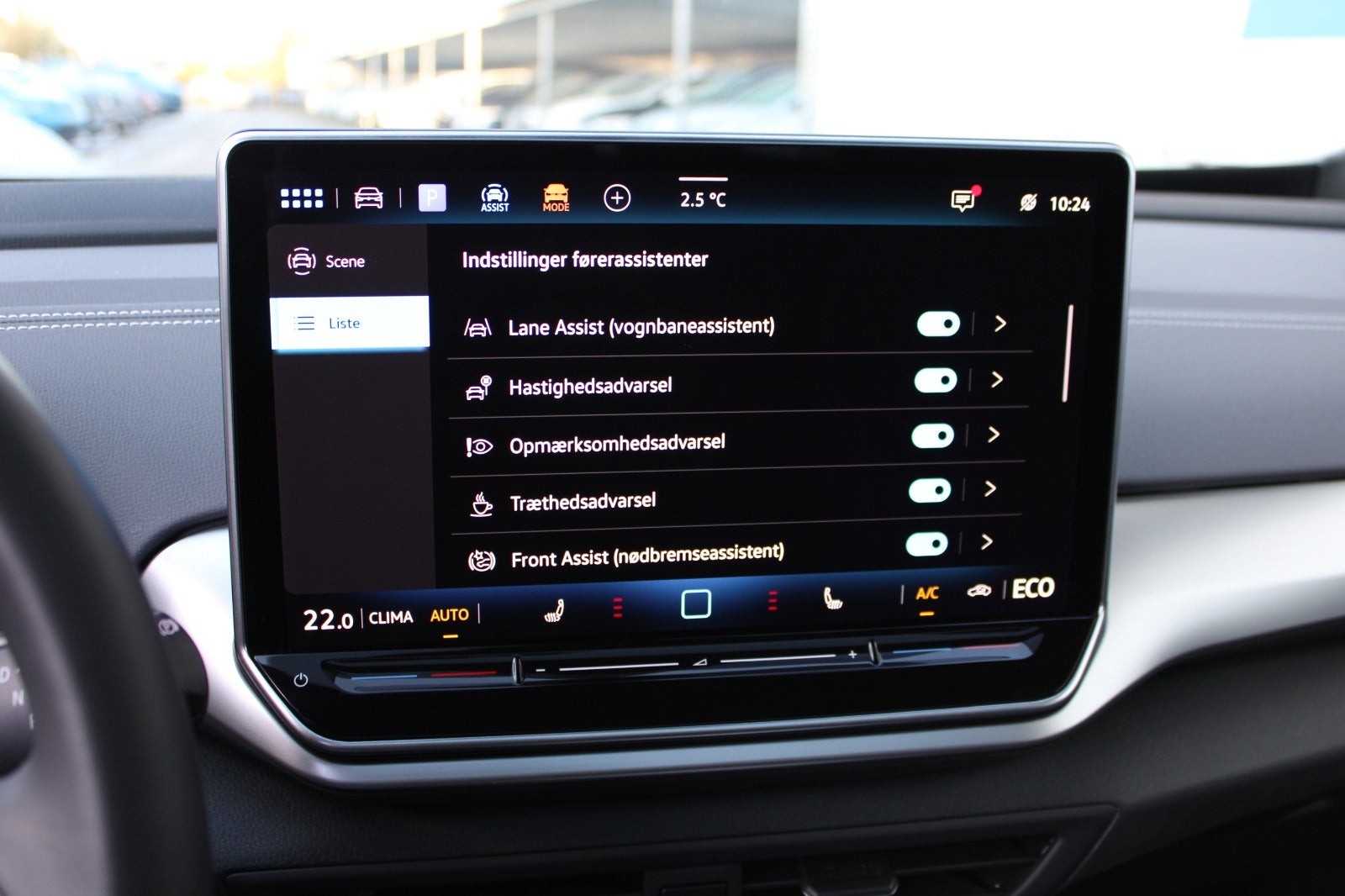 Wireless App-Connect, blue dusk metallak, varme i rat, mørktonede ruder i bag, interiørpakke plus, komfortpakke plus, sportspakke plus, assistentpakke plus, multimediapakke, 3 zone klima, dobbelt bagagerumsbund, "Discover Pro" navigation, "Dynamic Light Assist", fjernlysassistent, skiltegenkendelse, DAB-radio, ambientebelysning m. 30 farver, mørk loftbeklædning, parkeringsstyreassistent, kø assistent, emergency assist, udkørselsassistent, udstigningsadvarselssystem, prædikativ speed-limiter, designpakke, DC-batteriopladning (LH3), LED-baglygter, el-justerbar lændestøtte, træthedsregistrering, front assist, sædevarme, dynamisk styring, læder multifunktionsrat, tagræling, elektrisk kabinevarmer (parkeringsvarmer), el-klapbare sidespejle m/varme, aut. nedbl. bakspejl, regnsensor, alarm, udvidet sikkerhedssystem (PreCrash basic og front), frakobling af passagerairbag, digitalt cockpit, kørecomputer, bagagerumsdækken, splitbagsæde, automatgear, fjernb. centrallås, udv. temp. måler, 4x el-ruder, elektrisk parkeringsbremse, manuel forvarmning af batteri, musikstreaming via bluetooth, håndfrit til mobil, bakkamera, parkeringssensor for og bag, isofix, automatisk lys,