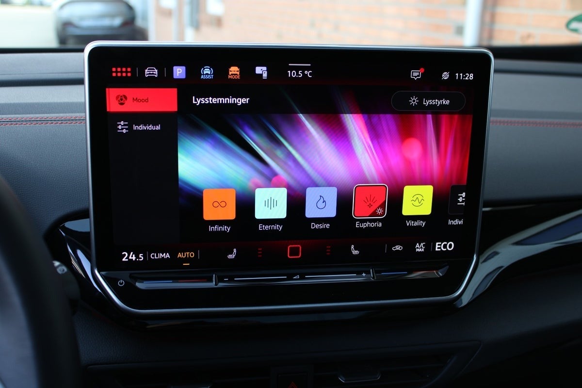 Apple Carplay og Android Auto, varme i rat, sort optik, dobbelt bagagerumsbund, assistentpakke plus, multimediapakke plus, sportspakke, interiørpakke plus, komfortpakke plus, designpakke plus, ambientebelysning m. 30 farver, fjernlysassistent, skiltegenkendelse, DAB-radio, sædevarme, røde kontrastsyninger, sort loftshimmel, 3 zone klima, sportsundervogn, elektrisk kabinevarmer (parkeringsvarmer), "Discover Pro" navigation, prædikativ speed-limiter, parkeringsstyreassistent, kø assistent, udkørselsassistent, emergency assist, udstigningsadvarselssystem, Wireless App-Connect, grenadillasort metallak, dynamisk styring, læder multifunktionsrat, el-klapbare sidespejle m/varme, soundsystem m. subwoofer, DC-batteriopladning (LH3), digitalt cockpit, køreprofilvalg, træthedsregistrering, LED-baglygter, front assist, udvidet sikkerhedssystem (PreCrash basic og front), frakobling af passagerairbag, DC-batteriopladning (LH3), aut. nedbl. bakspejl, regnsensor, alarm, musikstreaming via bluetooth, kørecomputer, bagagerumsdækken, splitbagsæde, tagræling, mørktonede ruder i bag, kurvelys, automatgear, fjernb. centrallås, udv. temp. måler, 4x el-ruder, elektrisk parkeringsbremse, manuel forvarmning af batteri, parkeringssensor for og bag, bakkamera, isofix, automatisk lys,